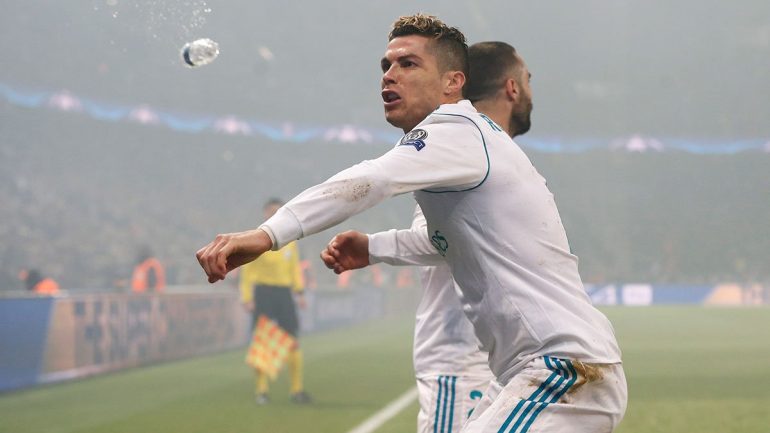 Portugezi vrapoi në një nga qoshet e fushës dhe u përqafua nga Carvajal. Para se të arrinin bashkëlojtarët tjerë, Cristiano u ngrit në këmbë dhe dikush nga tifozët e vendasëve i hodhi një shishe me ujë në drejtim të tij, sic shihet në foto.