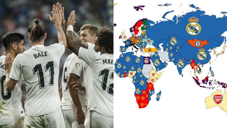 Ja se si duket harta e e botës në bazë të popullaritet që gëzojnë klubet në vendet respektive: