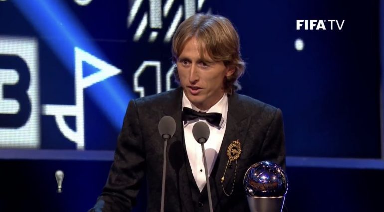 Mirënjohjet: ”Është një nder i madh, një senzacion madhështor të kem në duar këtë çmim. Fillimisht dua të përgëzoj Salah dhe Cristianon për sezonin e tyre madhështor. Jam i sigurtë që në të ardhmen do të keni më tepër mundësi, ky trofe nuk është vetëm i imi por i të gjithë bashkëlojtarëve tek Real Madridi dhe tek kombëtarja Kroate, është për trajnerët e mi sepse pa ta nuk do të ishte e mundur. Poashtu është për familjen time, pa të cilën nuk do të isha njeriu dhe lojtari që jam sot. Faleminderit tifozëve nga e gjithë bota për mbështetjen që më kanë dhënë sepse ka shumë kuptim për mua. Dua poashtu të falenderoj të gjithë ata që më kanë votuar.”