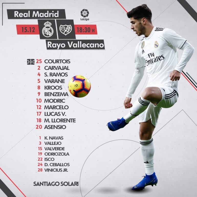 Real Madrid XI: Courtois; Carvajal, Varane, Ramos, Marcelo; Modric, Llorente, Kroos; Vazquez, Benzema, & Asensio.